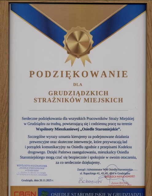 A A ANa ręce Komendanta wpłynęło podziękowanie dla grudziądzkich strażników miejskich za podejmowane działania prewencyjne oraz skuteczne interwencje przywracające ład i porządek komunikacyjny.