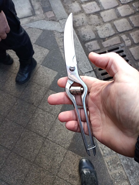 Ostatecznie strażnicy ujęli owego mężczyznę przy ulicy Kosynierów Gdyńskich i odebrali ostre narzędzie. Narzędziem tym okazał się sekator do mięsa około 40 cm długości. Mężczyzna cały czas był agresywny i czuć było od niego woń alkoholu.