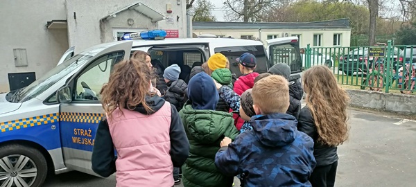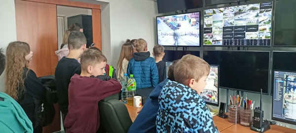 Przyglądały się one z bliska naszej profesji i z uwagą słuchały strażników. Rozmawialiśmy o bezpieczeństwie na drodze i podczas kontaktu z osobą obcą. Trzecioklasiści mieli okazję zauważyć jak wygląda praca strażnika z drugiej strony. Zobaczyły stanowisko dyżurnego, Miejski Monitoring Wizyjny oraz radiowóz, który okazał się największą atrakcją.