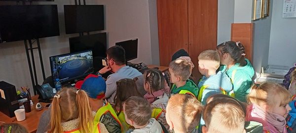 Tradycyjnie zwiedzanie Straży Miejskiej rozpoczęliśmy od stanowiska dyżurnego by potem udać się do siedziby monitoringu. Tam maluchy miały możliwość usiąść za sterami operatora monitoringu i zobaczyć miasto z innej perspektywy. Potem „mali goście” mieli okazję zobaczyć radiowóz od „środka”. Maluchy miały możliwość włączenia na moment sygnałów świetlnych i dźwiękowych, a my tłumaczyliśmy, kiedy można ich używać i jak wówczas piesi powinni zachować się na drodze.