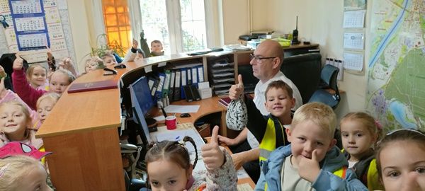 Dzieci z przedszkoli bardzo chętnie nas odwiedzają. Podczas takich wizyt zapoznajemy je z naszą pracą, rozmawiamy o bezpieczeństwie, pokazujemy sprzęt i oprowadzamy po siedzibie. Nie inaczej było tym razem.
