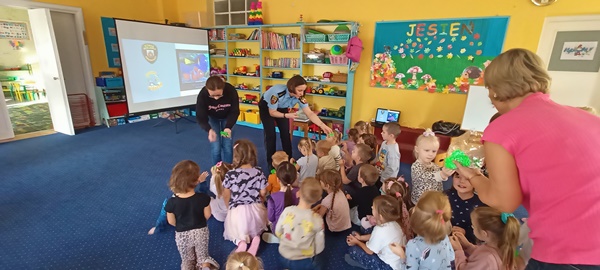 Po zakończonej prelekcji wszystkie dzieci otrzymały od nas mały element odblaskowy.