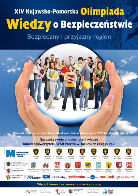 A A AZapraszamy uczniów naszego województwa do XIV edycji Kujawsko-Pomorskiej Olimpiady Wiedzy o Bezpieczeństwie „Bezpieczny i przyjazny region”.