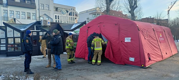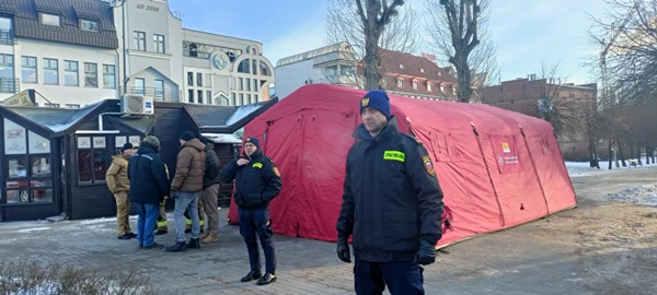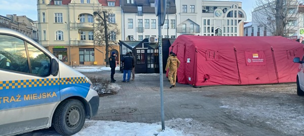 W związku z występującymi niskimi temperaturami wczoraj, tj. 1 lutego br. w centrum miasta przy al. 23 Stycznia ustawiono specjalistyczny namiot grzewczy wyposażony w krzesła i stoliki, gdzie można usiąść i otrzymać gorący napój (kawa, herbata) oraz wodę pitną. Namiot ten, czynny jest całą dobę, dostępny dla każdego, kto potrzebuje się ogrzać i schronić przed mrozem.