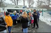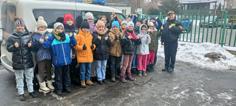 Stałym elementem takich wizyt jest cieszący się dużym zainteresowaniem nasz radiowóz. Dzieci miały możliwość usiąść za kierownicą, poczuć się jak strażnik oraz włączyć na moment sygnały świetlne i dźwiękowe. Przy tej okazji tłumaczyliśmy, kiedy można ich używać i – co najważniejsze – jak wówczas piesi powinni zachować się na drodze.