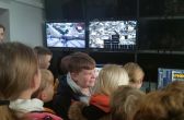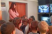 Zwiedzanie rozpoczęliśmy od stanowiska dyżurnego przyjmującego na co dzień zgłoszenia od mieszkańców. Kolejnym miejscem był Miejski Monitoring Wizyjny gdzie maluchy mogły usiąść za sterami operatora. Tam z zaciekawieniem wpatrywały się w ekrany monitorów.